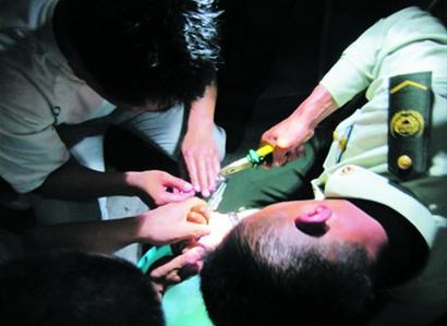 “先看看能不能滑出來!”按照指揮員的指令,戰(zhàn)士們先端來一盆冷水,澆到手指上冷卻消腫,然后用肥皂水潤滑手指,再一點點往外旋轉(zhuǎn)??墒沁z憾的是,戒指又卡在了無名指第二節(jié)處無法取下。此時,戰(zhàn)士們不得不取出斷電鉗對戒指破拆。