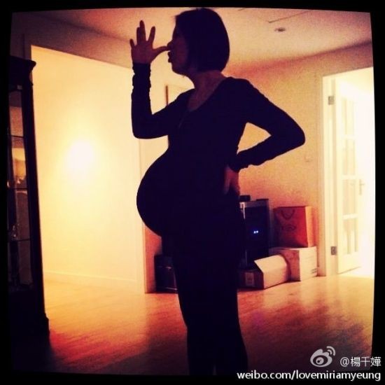 楊千嬅5月24日在微博中曝光的大肚照