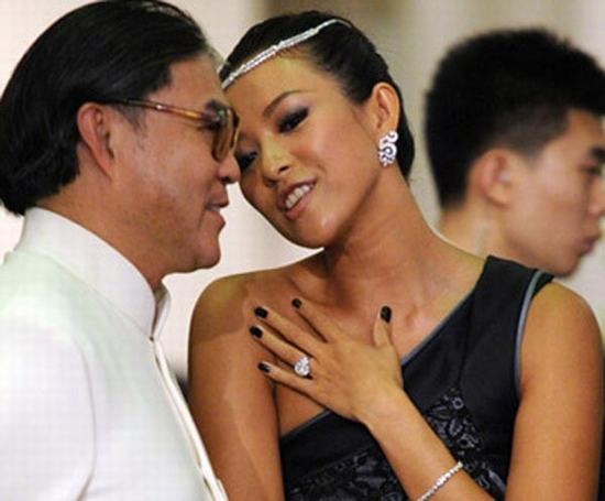 2008年BAZAAR慈善夜,章子怡作為現(xiàn)場媒體關注的焦點,十分大氣地與臺上嘉賓互動,競拍物品。臺下,章子怡與香港奧委會會長霍震霆交談