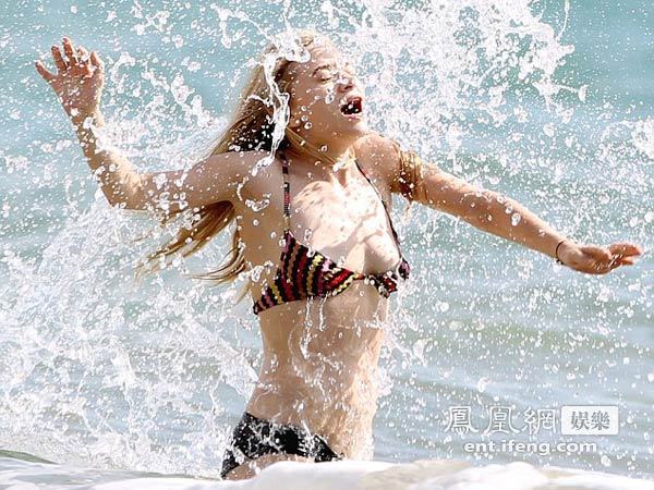 當(dāng)?shù)貢r(shí)間2012年5月20日,美國(guó)電視明星艾什麗-奧爾森(Ashley Olsen)現(xiàn)身夏威夷海灘,上演海浪驚魂一幕。
