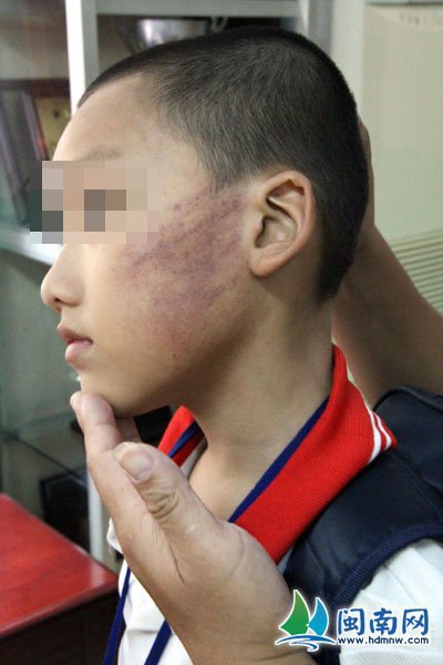 “朋友在電話里說,兒子在距家約1公里處的路邊,臉上紅腫一片,說是被老師打的?!苯油觌娫捄?,賴先生急忙出門尋找兒子。回到家中,小賴哭著說,是老師讓他們幾個同學互相打臉的,“還不能打輕,說要打重些”。臉頰紅腫的小賴擔心被家人看到,下了校車后,遲遲不敢回家。