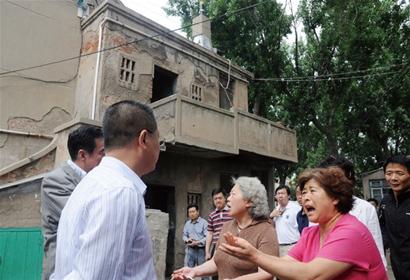 工作人員隨后來到秦大爺所說的樓下鄰居家,66歲的咸女士在這里已住了幾十年?!皫啄昵熬徒拥轿7客ㄖ?,住在這里擔驚受怕?!毕膛空f,自己希望政府能夠拆遷,讓自己住上安全的房子。在隨后的走訪中,不少居民得知有區(qū)領導來實地考察,紛紛來反映自己的住房情況?!耙坏奖┯晏鞖猓游瘯蜁裎覀儼岢鰜肀鼙?,可我們心里真不是滋味?!币幻忻裾f。