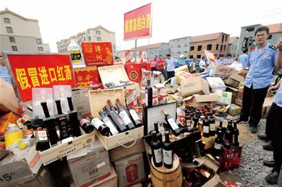 ????印著洋碼子的所謂高檔紅酒其實(shí)是假酒,一些過期發(fā)霉的火腿腸、面包連狗都不吃……前天上午,即墨工商局在泰山一路垃圾處理廠,集中銷毀了價(jià)值百余萬元的假冒偽劣和過期食品。這些商品都是即墨工商部門從奸商那里查扣的。