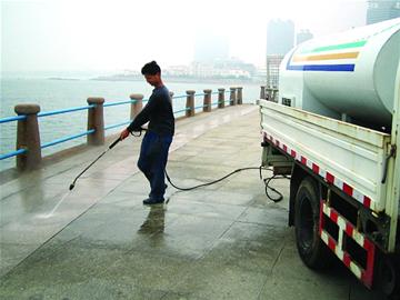 拿著水槍、鏟子、小鐵刷和噴壺,30名保潔人員走上棧橋景區(qū)集中清理頑固的黑色“雀斑”,幫助棧橋恢復(fù)昔日容顏。隨著旅游旺季的到來,每天有數(shù)萬游客前往前海景區(qū)游玩。為了解決游客隨口亂吐的口香糖痕跡,棧橋景區(qū)管理處動用一輛高壓水車,30名配備“武器”的員工,用上洗衣液和火堿,足足一周時間才將頑固的口香糖鏟除,然而還能看到留下的點點黑斑。