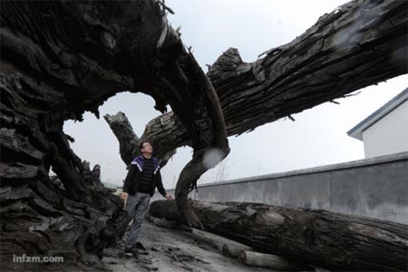 2012年春節(jié)時,四川彭州市通濟鎮(zhèn)麻柳村農(nóng)民吳高亮在自家承包地中,發(fā)現(xiàn)了這筆“橫財”露出的一小段枝椏。一個月后,吳高亮開始發(fā)掘,沒想到半路殺出當?shù)卣瑠Z走了烏木,稱這屬于國有。