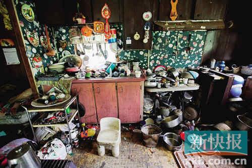 這是居民莫斯·諾伯家的廚房當(dāng)然也在他的拖車?yán)铮褲M了各式各樣的雜物 奧利斯縣,2010年度家庭中位收入折合人民幣不到12萬(wàn)元,列全美最窮縣