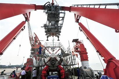 ????“蛟龍?zhí)枴睋碛惺澜缟贤愋洼d人潛水器的最大下潛深度——7000米,這意味著“蛟龍?zhí)枴笨稍谡际澜绾Q竺娣e99.8%的廣闊海域自由行動?!?000米級海試的成功是研制工作的結點,同時是深海應用的起點?!薄膀札?zhí)枴备笨傇O計師胡震介紹說,未來“蛟龍?zhí)枴钡氖姑ㄟ\載科學家和工程技術人員進入深海,在海山、洋脊、盆地和熱液噴口等復雜海底有效執(zhí)行各種海洋科學考察任務,開展深海探礦、海底高精度地形測量、可疑物探測和捕獲等工作,并可以執(zhí)行水下設備定點布放、海底電纜和管道的檢測以及其它深海探尋及打撈等各種復雜作業(yè),擁有非常廣闊的應用前景。