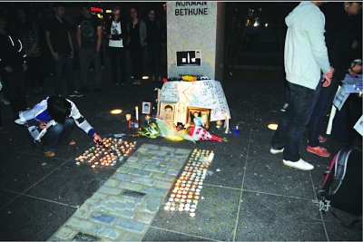林俊遇害的消息被證實后,加拿大當?shù)貢r間6月1日晚8點,在蒙特利爾Concordia大學廣場的白求恩雕像下,魁北克的留學生論壇愛蒙城網(wǎng)及林俊的生前好友,為他舉行了悼念會。據(jù)當?shù)厝A僑稱,按中國傳統(tǒng),昨日是林俊“頭七”,當?shù)厝A人自發(fā)組織了一系列悼念活動,Concordia大學在官方網(wǎng)站上致信悼念林俊。(蒙特利爾悼念活動現(xiàn)場照片)