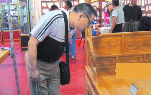 市民在參觀售價(jià) 720萬(wàn)元的檀木床。
