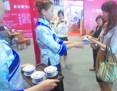????普洱茶是著名的黑茶代表。大葉普洱蘊(yùn)德老茶坊總經(jīng)理姜偉帶來(lái)了今年重點(diǎn)推出的產(chǎn)品“春秋問(wèn)茶”和大葉茶緣。同樣帶來(lái)黑茶產(chǎn)品的,還有肖鴻茶業(yè)有限公司的董事長(zhǎng)肖鴻:“在青島這樣一個(gè)大都市,黑茶非常有市場(chǎng),這源于它有著獨(dú)特的保健作用,對(duì)降三高、醒酒 、減肥都有益處?!彼业睦钊A堂花卷茶歷時(shí)一年半制成,純手工自然干燥。湖南白沙溪茶廠有限責(zé)任公司銷售經(jīng)理李楠也為自家的安化黑茶做起了推銷,“我們的安化黑茶選用海拔1622米高的湖南雪峰山脈優(yōu)質(zhì)野生大葉喬木類茶種為原料,經(jīng)過(guò)殺青、揉捻等30多道傳統(tǒng)加工工藝制成,非常有特色?!?/p>