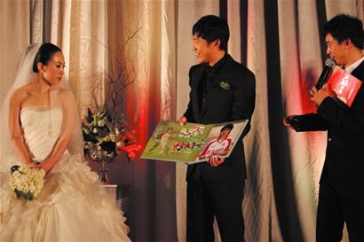 昨日,曲波完成了自己人生的一件大事,與自己相戀8年的女友,美麗的青島姑娘朱燕翔步入婚姻殿堂。同時(shí)在婚禮現(xiàn)場(chǎng),青島早報(bào)向曲波送上了一份珍貴的結(jié)婚禮物——一本影集。這本影集中記錄了曲波從2000年至今所有的精彩進(jìn)球。同時(shí),本報(bào)記者也為這位已經(jīng)完成了自己職業(yè)生涯百球大業(yè)的“追風(fēng)俠”送去了新婚祝福。