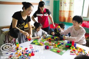 因為是雙休日,大多孩子被家長接回去了,剩下的十幾個孩子正在玩玩具。
