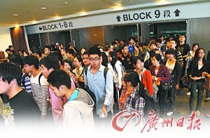 “美國高考”離中國內(nèi)地最近的考場在香港,一年考6次,幾乎次次都是這樣的景象:內(nèi)地高中生“千軍萬馬”赴港趕考。
