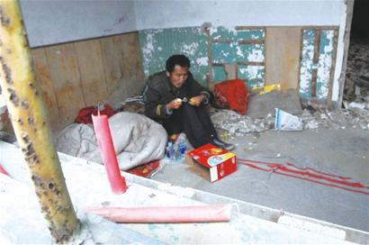 ????一名村民告訴記者,今年過春節(jié)時,這名流浪漢就來到了這里,當時身上什么都沒有,村民看他可憐,給他送來了被褥和紅蠟燭,還有村民幫他把窗子封了起來擋風。就這樣,流浪漢一住就是幾個月,因為他平時一句話也不說,村民無法幫他找家。平時只好拿來一些吃的給他充饑,這名流浪漢也很“勤快”,沒事時到處撿廢品換錢。