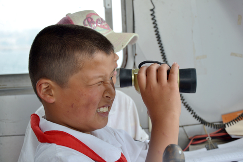 當(dāng)參觀到船長(zhǎng)室的時(shí)候,姐弟倆徹底被吸引住了,不停地問這問那。在船長(zhǎng)室,有很多望遠(yuǎn)鏡,平日里主要用來出租,這些東西迅速引起了孩子們的興趣。姐弟倆通過望遠(yuǎn)鏡,看到了遠(yuǎn)處的燈塔、帆船,還看到了海岸邊的高樓、街道,鈺婷忍不住贊嘆:“這個(gè)太厲害了!”