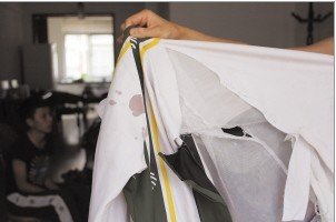 小文的校服被撕破并留有血跡 趙斌 攝