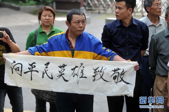 6月4日,一位自發(fā)送別吳斌的市民在馬路邊打出致敬的橫幅。