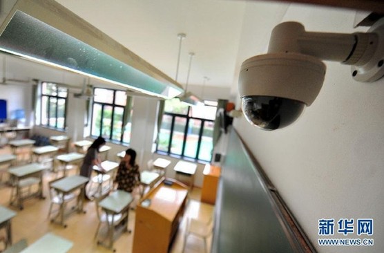 6月6日在華東模范中學(xué)考點(diǎn)內(nèi)拍攝的全方位視角攝像探頭。今年高考期間,上海所有考點(diǎn)的教室內(nèi)都已安裝攝像探頭。