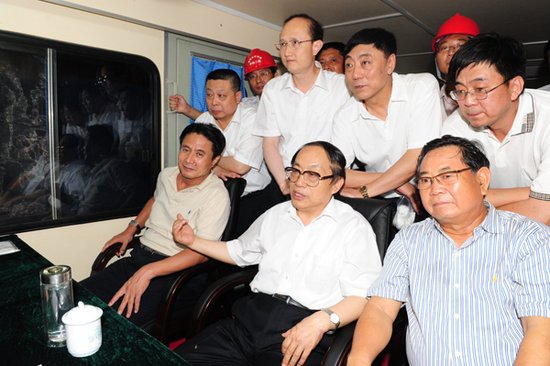 資料圖:劉志遠(yuǎn)(后排中)陪同劉志軍考察海南鐵路項目。