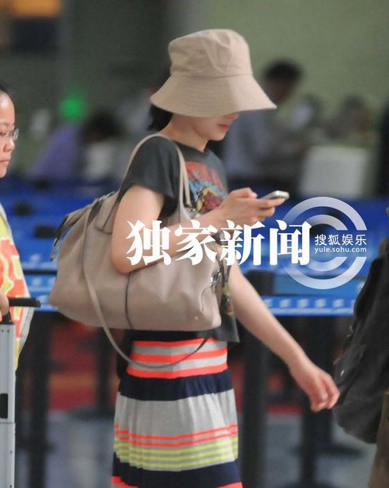 小宋佳素顏休閑裝低調出行 手機玩不停現神秘紋身