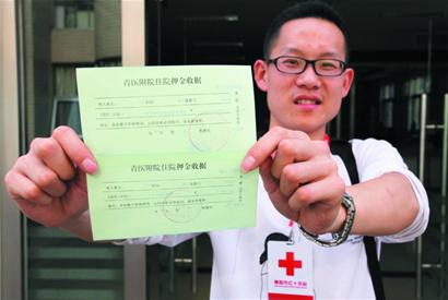 青醫(yī)附院新生兒科一醫(yī)護(hù)人員將620元的住院押金條交給了趙祥海?!白蛱?,有位大姨來(lái)這邊找你,等了半天也沒(méi)等到你,我說(shuō)你可能在黃島不一定哪天過(guò)來(lái)?!痹撫t(yī)護(hù)人員說(shuō),隨后她和大姨一起將620元打進(jìn)了老二恩志的住院賬戶里。