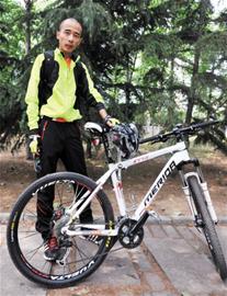 ????昨日上午記者見到蘇夷風(fēng)時(shí),他戴著頭盔、穿著沖鋒衣、提著山地自行車匆匆從樓梯上跑下來(lái)。他很健談,時(shí)不時(shí)還會(huì)與記者開個(gè)玩笑。