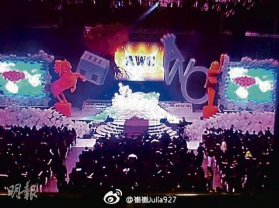 現(xiàn)場以大量氣球布置,左邊有金馬獎(jiǎng),右邊有金像獎(jiǎng)。