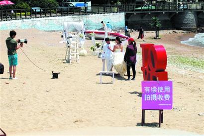 ????海邊沙灘本是公共場所,如今卻有攝影機(jī)構(gòu)將它“占為己有”,成了為自己賺錢的工具。昨天上午,有青島市民撥打早報(bào)熱線82888000反映此事,稱在第一海水浴場外東邊有處沙灘,近期被一家攝影機(jī)構(gòu)擺上“椰樹”、鋼琴、快艇等拍攝婚紗照的道具,對想要在此拍攝婚紗照的市民按照每次200元的價(jià)格收費(fèi)。“沙灘是公共資源,怎么能成為私人牟利的工具?而且別人想進(jìn)還不允許。”這名市民提出疑問。昨天記者就此展開采訪,八大關(guān)轄區(qū)內(nèi)的城管、工商部門表示,他們將在今天到現(xiàn)場了解情況。