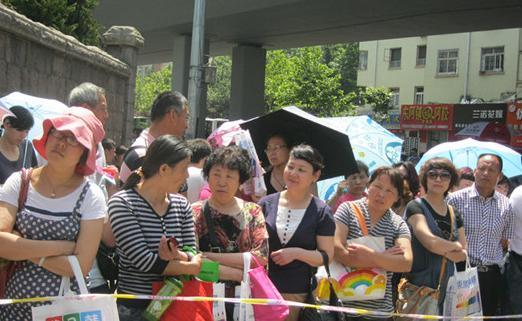 十五中考點門外,家長們排隊等考生出來