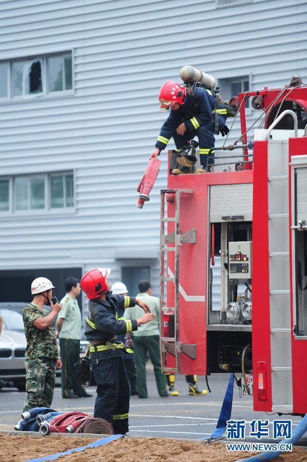 6月12日,消防隊(duì)員在搬運(yùn)滅火設(shè)備。