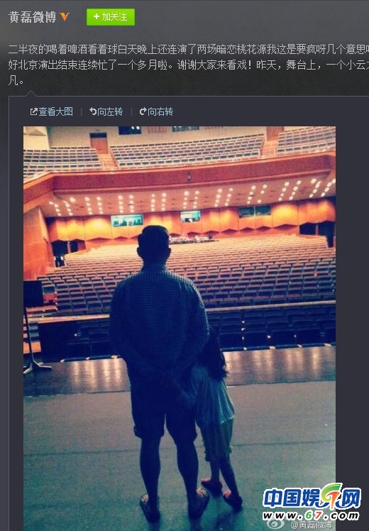 黃磊近日忙著《暗戀桃花源》的演出,發(fā)微博感嘆半夜喝啤酒看球,白天晚上連演兩場,連續(xù)工作勞累,還好黃磊有女兒黃多多支持,黃磊在微博上發(fā)出女兒的照片,黃多多可愛美麗,越來越有明星范兒。