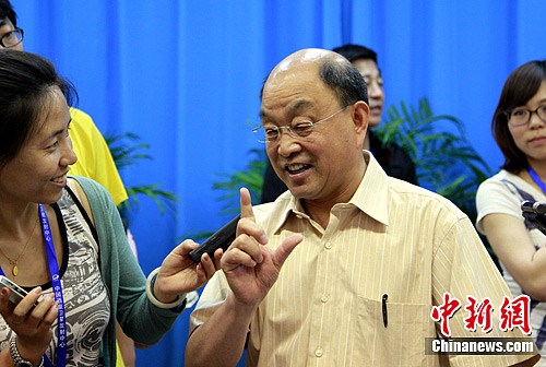 6月13日,中國酒泉衛(wèi)星發(fā)射中心主任、載人航天工程發(fā)射場系統(tǒng)總指揮崔吉俊笑答媒體關(guān)于神舟九號任務(wù)的提問,中新社發(fā) 孫自法攝