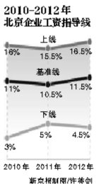 昨日,北京市人力社保局發(fā)布“2012年企業(yè)工資指導(dǎo)線”。其中,基準(zhǔn)線定為11.5%。市人力社保局建議,生產(chǎn)經(jīng)營正常、經(jīng)濟(jì)效益增長的企業(yè),可參照該幅度安排本企業(yè)的工資增長水平。