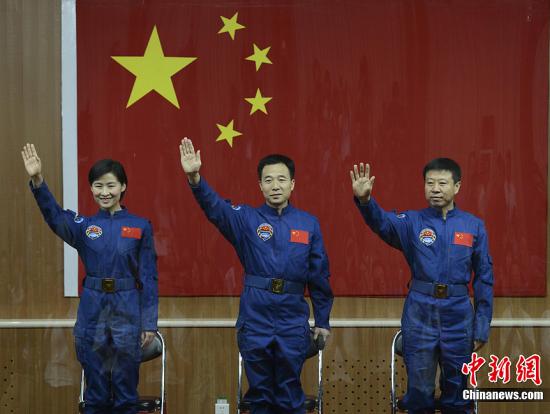 中國(guó)人民解放軍航天員大隊(duì)男航天員景海鵬、劉旺和女航天員劉洋組成“神九”飛行乘組,執(zhí)行中國(guó)首次載人交會(huì)對(duì)接任務(wù)。