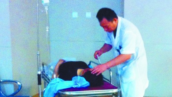 海慈醫(yī)院急診室內(nèi),醫(yī)生正在為傷者診治。