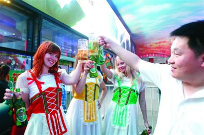 昨天下午6時,由市北區(qū)特色街管理委員會辦公室主辦、青島讀城文化傳媒有限公司承辦的“激情狂歡夜,醉美啤酒街”2012青島啤酒街開街慶典在天幕城舉辦。巨型“酒杯”、原創(chuàng)爵士啤酒舞等悉數(shù)亮相。此外,今年啤酒街會在價格上下功夫,將以最優(yōu)惠的價格款待八方來客。