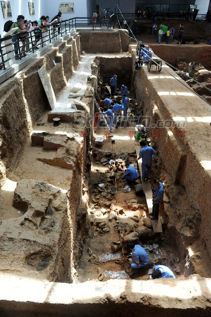 據(jù)了解,第三過洞是集中發(fā)現(xiàn)陶俑的地方,其中橫七豎八躺著許多陶俑殘段,目前仍在陸續(xù)清理中。