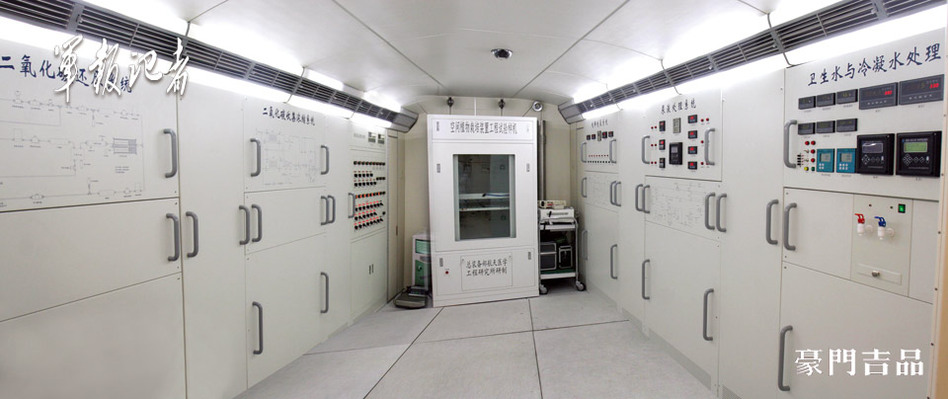 “神九”飛天在即,記者走進(jìn)航天中心,探秘航天城。環(huán)控生保系統(tǒng)。朱九通、(記者張曉祺 攝)