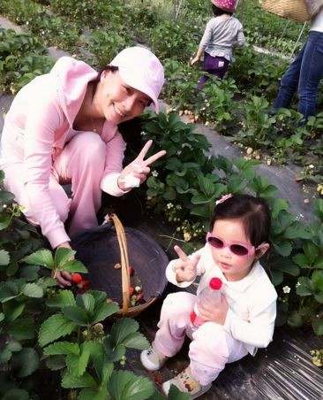 張庭林瑞陽帶女兒摘草莓 全家郊游其樂融融