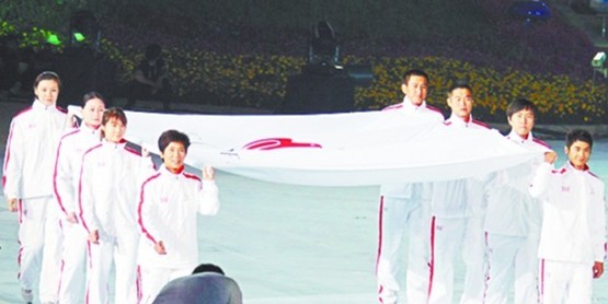 ????當晚8時50分,亞奧理事會會旗進入開幕式現(xiàn)場,八名身著白色運動服的旗手聯(lián)手將旗子擎進會場,這是八名中國體育界的名人。排在最前面的兩名旗手十分引人注意,扯住旗子一角的是悉尼奧運會體操冠軍邢傲偉和前世界冠軍、山東省乒乓球運動管理中心主任喬云萍。其中 ,邢傲偉是煙臺體育的驕傲,而喬云萍則成為旗手中四名青島健兒的代表。原來,除了喬云萍,旗手中還有另外三名島城健兒,他們分別是亞洲蝶后、世錦賽金牌得主周雅菲,前著名國腳、前國青隊主教練宿茂臻以及男子國際象棋特級大師卜祥志。