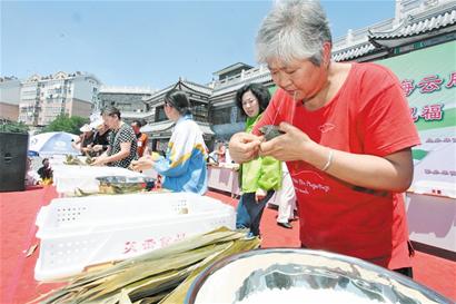 2012首屆青島海云庵端午文化周活動吸引了眾多市民的參與,包粽子大賽活動更是人氣十足,記者昨天從活動現(xiàn)場了解到,粽子比賽賽出了不少民間高手,非傳統(tǒng)的包法也讓在場的市民紛紛叫絕。五角粽子、七角粽子、無繩粽子,各種各樣的花色粽子讓前來學(xué)習(xí)的市民大飽眼福。記者從主辦方了解到,如果擅長非傳統(tǒng)包法的民間高手,可以在接下來的時間里到海云廣場參加比賽。
