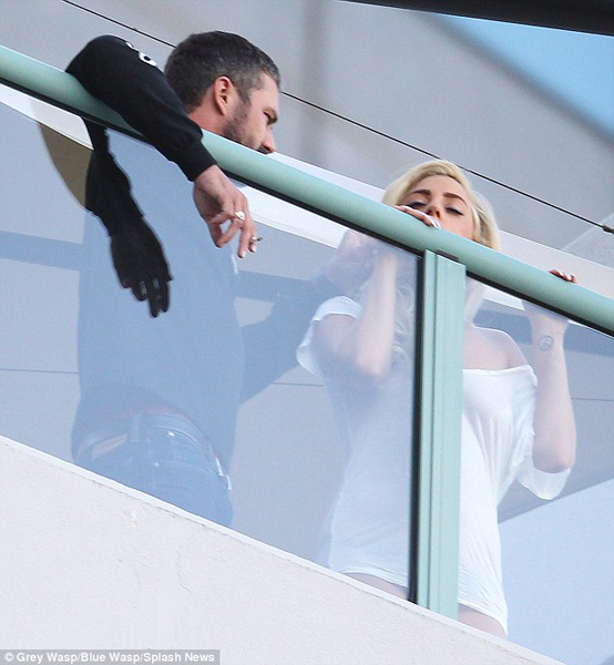 日前,Lady Gaga被偷拍到與男友陽臺親密擁抱