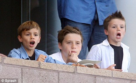 貝克漢姆三個(gè)兒子也現(xiàn)身球場為老爸加油