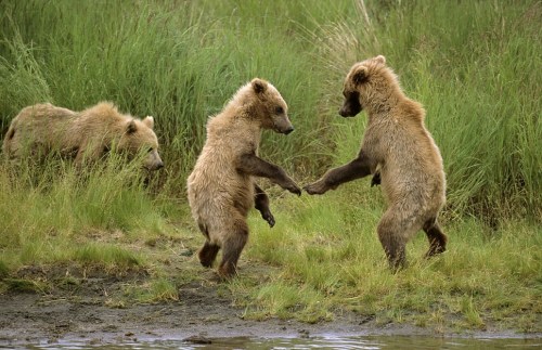 兩只小熊在河畔玩耍 中新網6月19日電據外媒18日報道,攝影師在美國阿拉斯加拍攝到兩只小熊互相打鬧、“練功夫”的照片,它們靈巧地躲避對方“偷襲”的動作令人不禁開懷一笑。 據報道,在美國卡特邁國家公園內,兩只1歲大的小熊在布魯克斯河畔玩起了“打架游戲”。小熊們絲毫沒注意到,在一旁的攝影師正偷拍它們,玩得十分起勁。小熊們的母親在一旁“放哨”,以確保其安全。 50歲的攝影師埃里克說,幼年時期的熊大多好動、活潑,給人俏皮可愛的感覺。但人們也必須保持警惕,以防可能出現的危險。他說,“我很幸運,它們的母親‘允許’我在一旁拍照”。 |