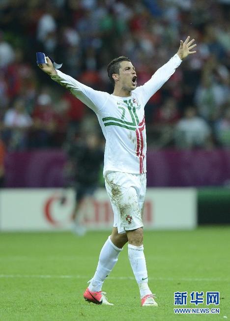 6月21日,葡萄牙隊球員克·羅納爾多在賽后慶祝勝利。當(dāng)日,在波蘭華沙進(jìn)行的2012歐洲足球錦標(biāo)賽首場四分之一決賽中,葡萄牙隊以1比0戰(zhàn)勝捷克隊,晉級四強。