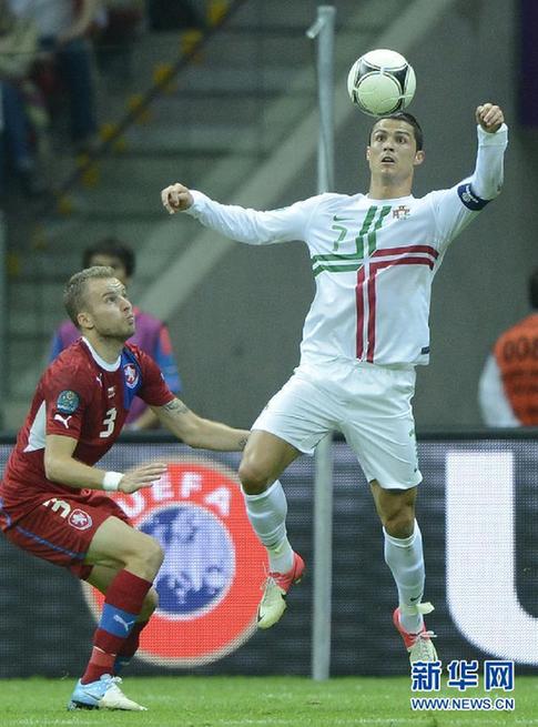 6月21日,葡萄牙隊球員克·羅納爾多(右)在比賽中停球。當日,在波蘭華沙進行的2012歐洲足球錦標賽首場四分之一決賽中,葡萄牙隊以1比0戰(zhàn)勝捷克隊,晉級四強。
