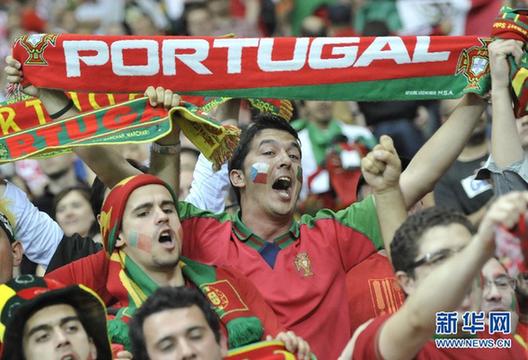 6月21日,葡萄牙隊(duì)球迷在比賽中為球隊(duì)助威。當(dāng)日,在波蘭華沙進(jìn)行的2012歐洲足球錦標(biāo)賽首場(chǎng)四分之一決賽中,葡萄牙隊(duì)以1比0戰(zhàn)勝捷克隊(duì),晉級(jí)四強(qiáng)。