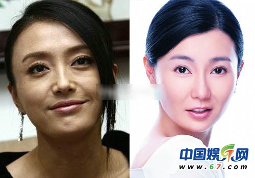 在張曼玉光輝的反射下,秦嵐的臉顯得滄桑無(wú)力,濃重的黑眼圈,法令紋老氣十足。