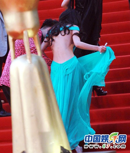 女星傅穎真空裝登臺(tái)階險(xiǎn)摔倒 杜海濤忙提裙