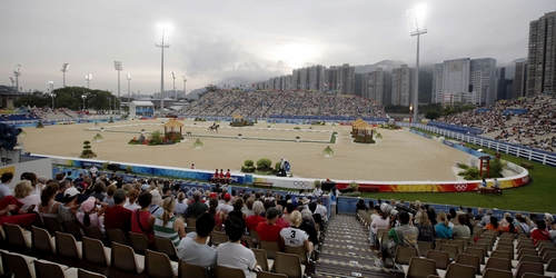 ????2008年8月9日至20日,萬(wàn)眾矚目的北京奧運(yùn)會(huì)馬術(shù)比賽在香港成功舉辦。賽事決出了盛裝舞步、場(chǎng)地障礙和三項(xiàng)賽的個(gè)人及團(tuán)體6枚金牌,來(lái)自40多個(gè)國(guó)家和地區(qū)的200多名馬術(shù)高手參與競(jìng)逐,吸引了眾多市民和訪港游客。 圖為2008年8月9日,北京奧運(yùn)會(huì)馬術(shù)比賽在香港正式開始,參賽選手在比賽中。(新華社記者 周磊 攝)